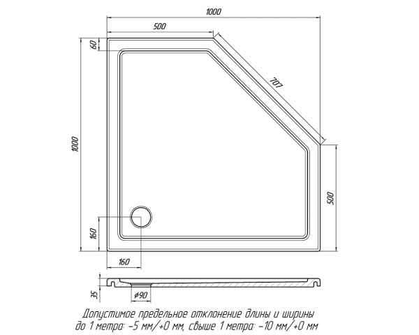 Піддон 1000*1000 п’ятикутний зі штучного мармуру