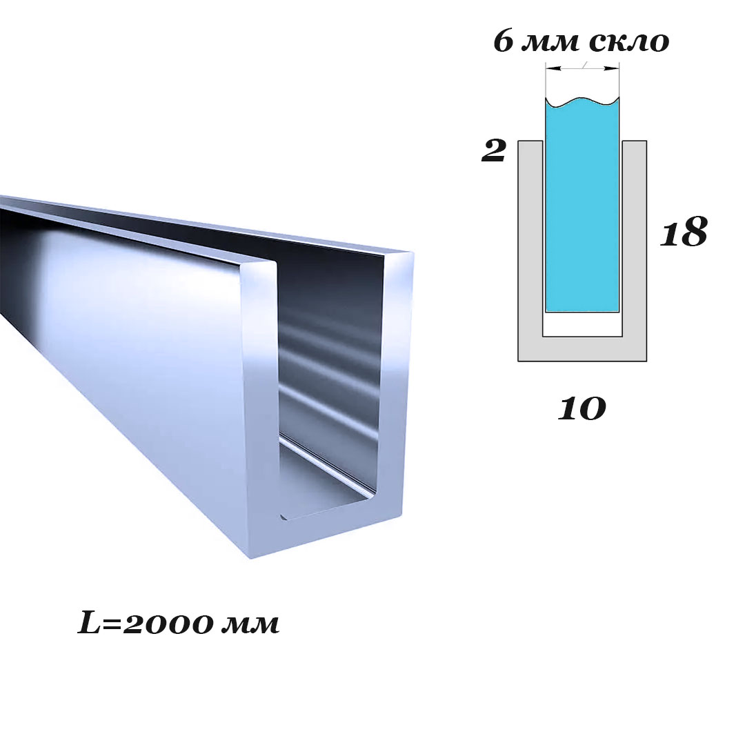 Профіль алюмінієвий полірований для скла 6*2000 мм в душову кабіну