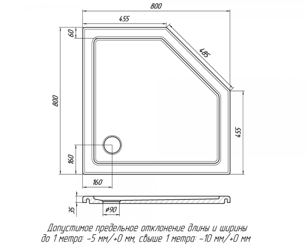Піддон 800*800 п’ятикутний зі штучного мармуру