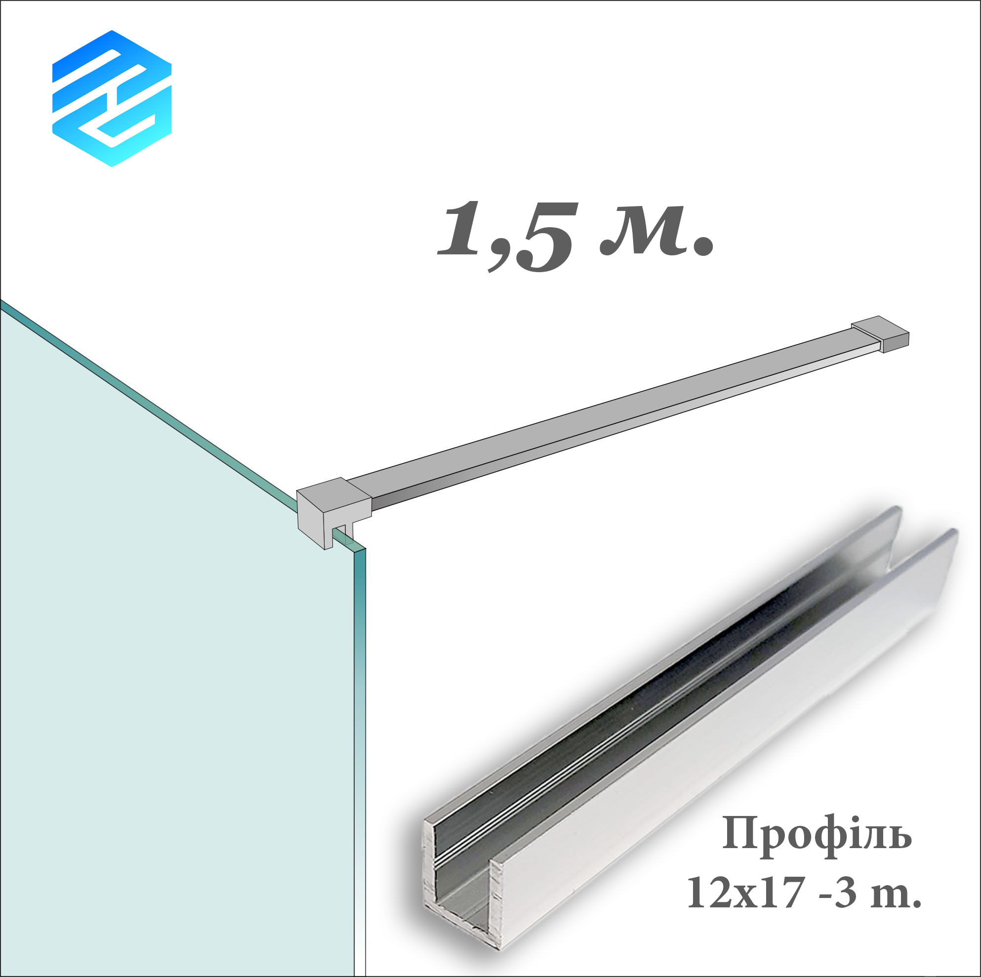 Фурнітура для душової перегородки: тримач плоский поперечний 1,5 метр + профіль 3 м. для скла 8 мм